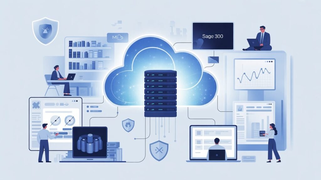 sage 300 erp cloud hosting means running Sage 300 on a cloud server instead of installing it on local machines.